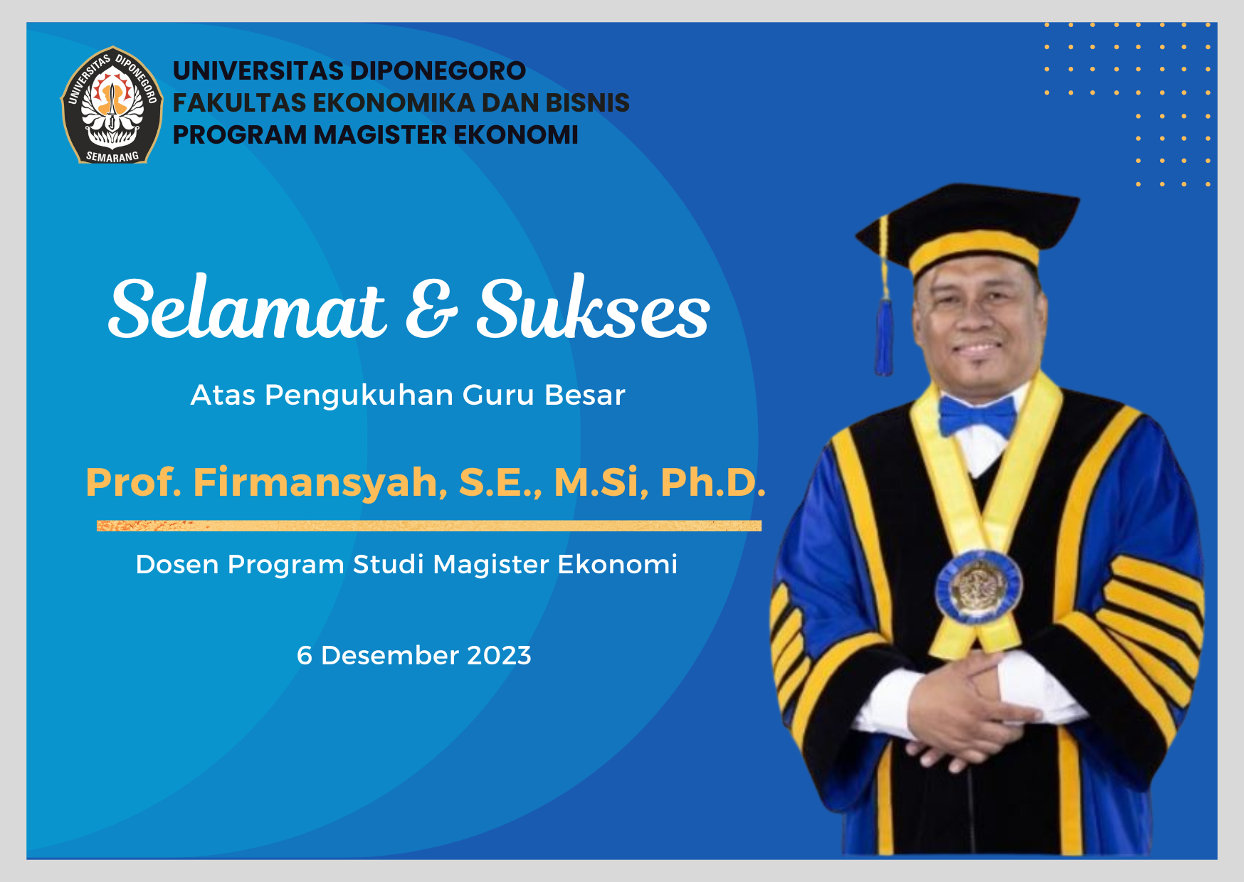 INAUGURATION OF PROF. AKHMAD SYAKIR KURNIA, S.E., M.Si., Ph.D AS PROFESSOR OF ECONOMICS AT FACULTY OF ECONOMICS DIPONEGORO UNIVERSITY
